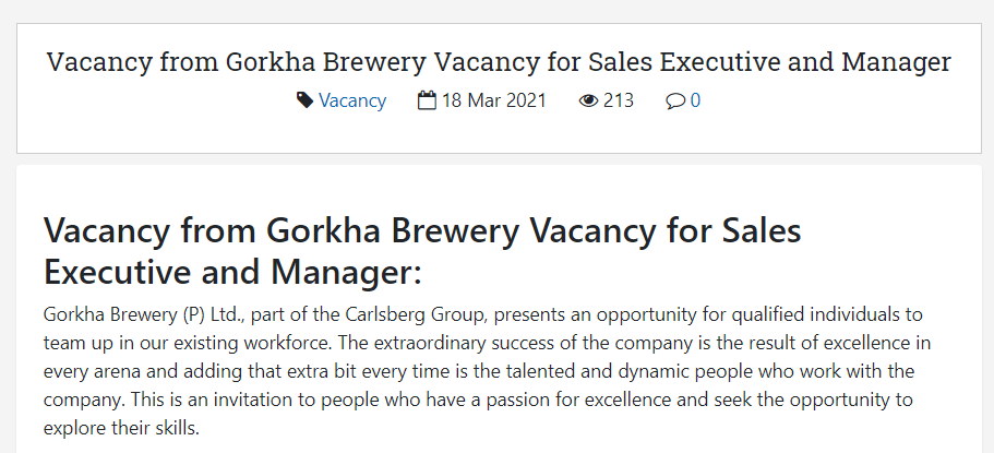 - Selection of candidates will be done through comprehensive interviews, unsolicited enquiries, and recommendations that may lead to disqualification. More details at https://gorkhabrewery.com/en/